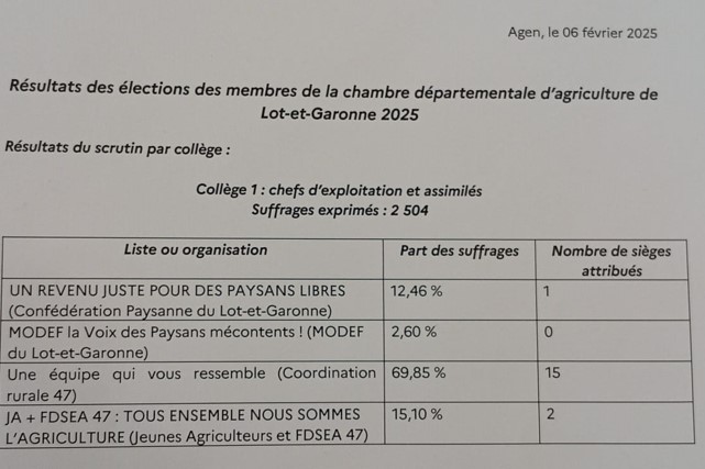 COMMUNIQUE DE PRESSE - Résultats élections chambre en Lot et Garonne